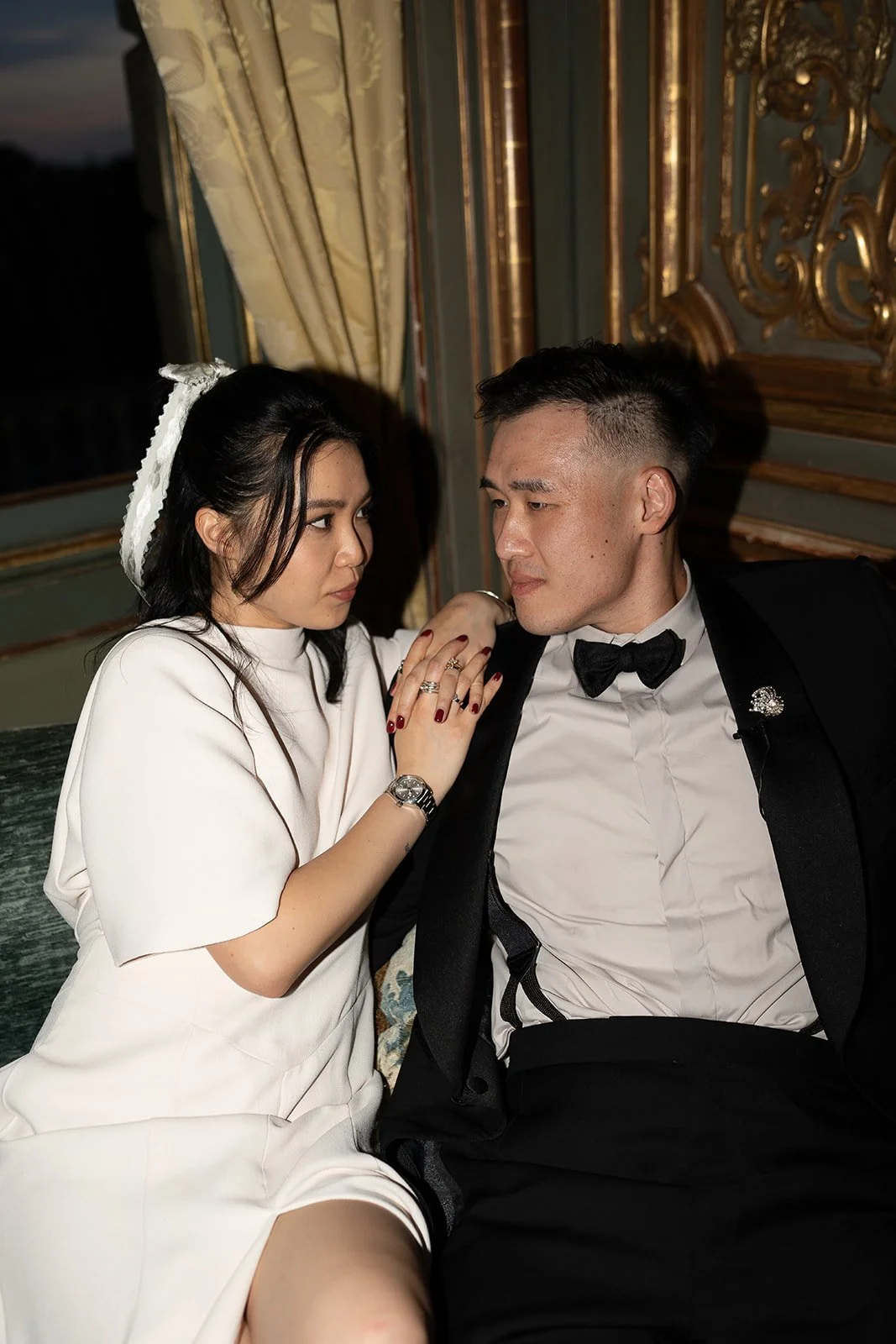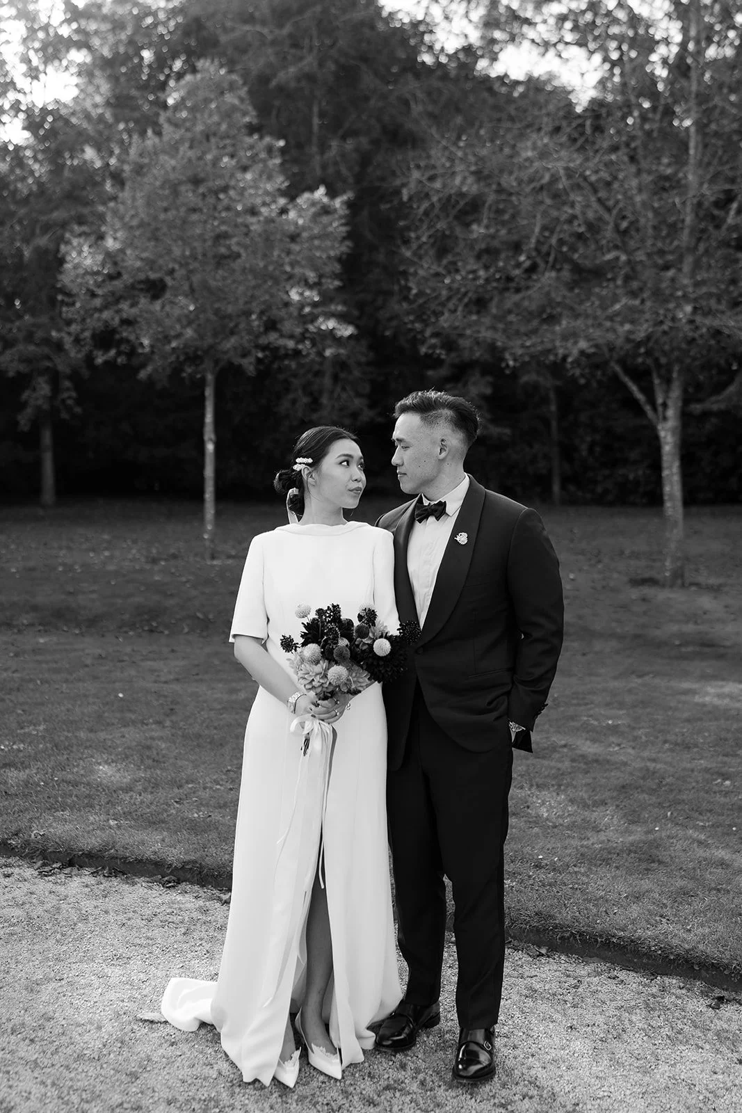 Sally & Brian’s impeccable taste was evident in every thoughtfully chosen detail. From Sally’s white Prada kitten heels and sleek black clutch with pearl handles to her striking icicle necklace, each element reflected her signature style - classic yet effortlessly modern. These refined touches, set against the grandeur of Cliveden House, created a visual narrative of sophistication and romance.
