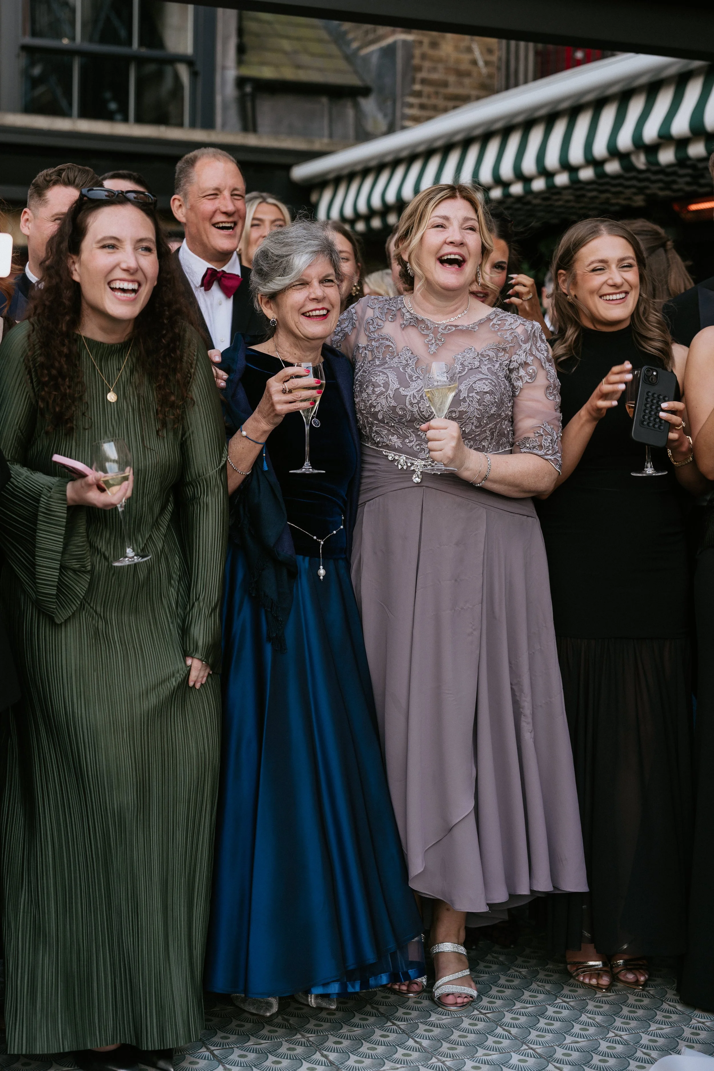 They exchanged vows at Chelsea Old Church before heading to Pavilion Club Knightsbridge, one of the chicest London wedding venues, for a modern reception featuring canapés, bowl food, and flowing champagne in place of a traditional dinner. Tatiana looks like a movie star and wore the sculptural ‘Ophelia’ gown by Saint Bridal for the ceremony, later changing into a slinky evening dress for a second flash session indoor at the Pavilion Club.